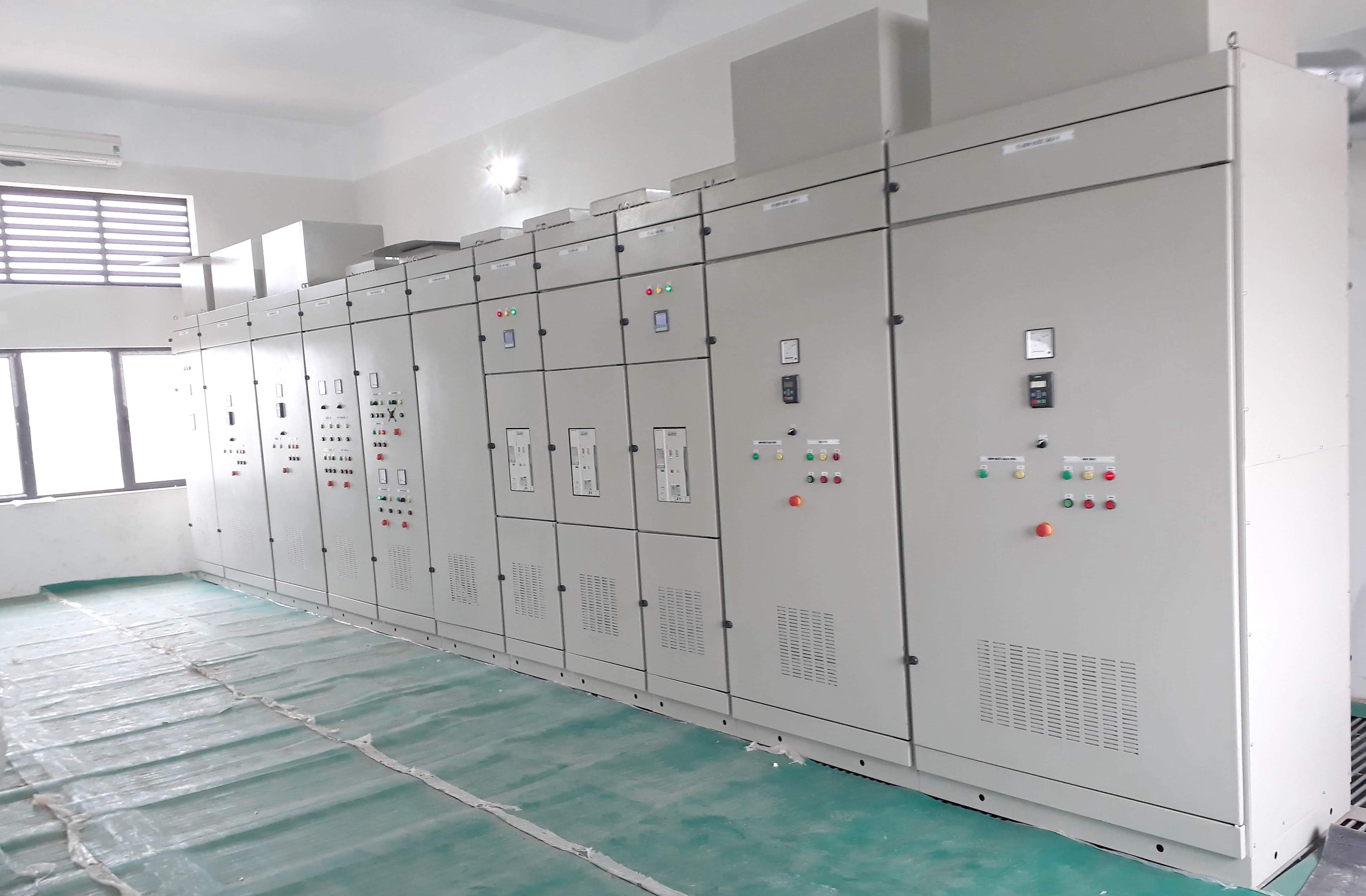 - Hệ thống tủ điện phân phối: Là nơi tiếp nhận trực tiếp từ nguồn lưới và chia ra các AT nhánh để cấp điện cho thiết bị, các khu vực, hệ thống điều khiển, chiếu sáng.
