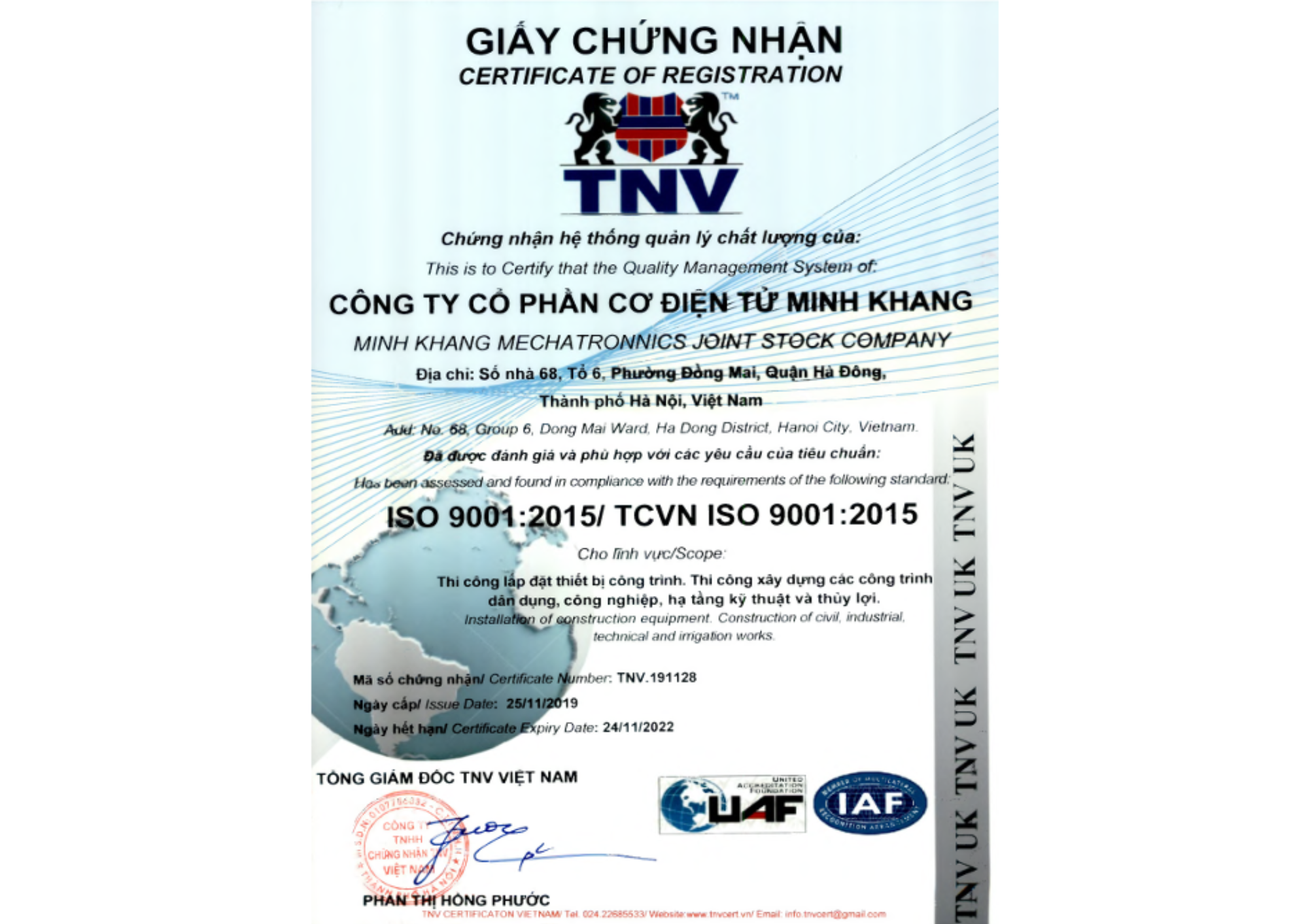 Với chính sách và mục tiêu: “Minh Khang – Chất lượng – Niềm tin”, “Chất lượng làm thỏa mãn nhu cầu của khách hàng”, “Dịch vụ đáp ứng theo nhu cầu”, trong quá trình phát triển công ty luôn chú trọng nâng cao chất lượng, trình độ nguồn nhân lực thông qua các hình thức đào tạo bồi dưỡng và chính sách thu hút nhân tài. Đồng thời không ngừng đổi mới công nghệ, áp dụng sáng kiến cải tiến kỹ thuật, tiết kiệm chi phí, hạ giá thành sản phẩm, tổ chức quản lý đạt hiệu quả kinh tế cao.